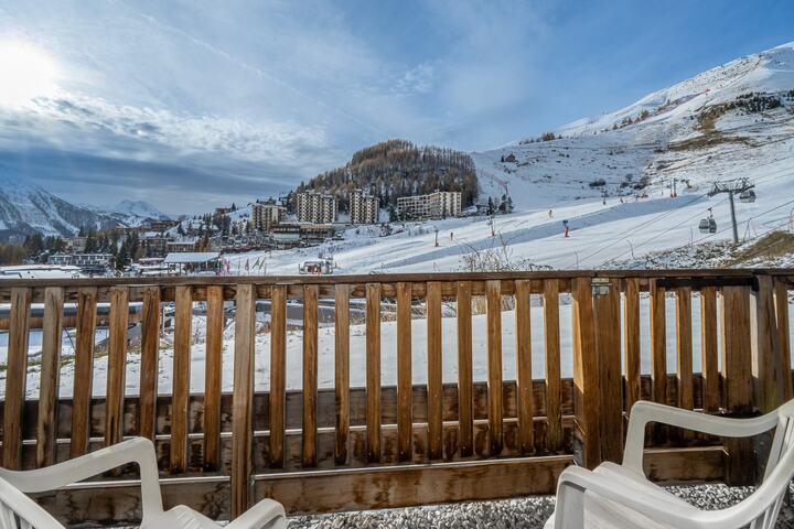 This cozy 36 m² apartment in Orcières features one bedroom and accommodates up to six guests, making it ideal for families or small groups. Located at the foot of the ski slopes, the apartment offers beautiful mountain views and easy access to winter sports activities. The property is equipped with modern amenities such as Wi-Fi, a TV, and a private terrace. Guests can also enjoy a communal heated swimming pool, an elevator for easy access, and open-air parking in the adjoining building. The apartment is situated in a family-friendly zone and is not pet-friendly.