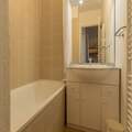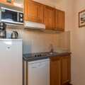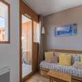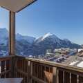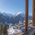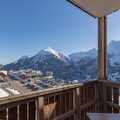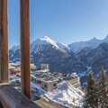 The living room includes two single sofa beds and a TV for relaxing après-ski. A separate bedroom offers a cozy bunk bed setup, while the bathroom provides a bathtub and hairdryer. Step onto the private terrace for stunning mountain views.