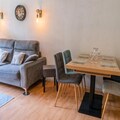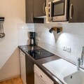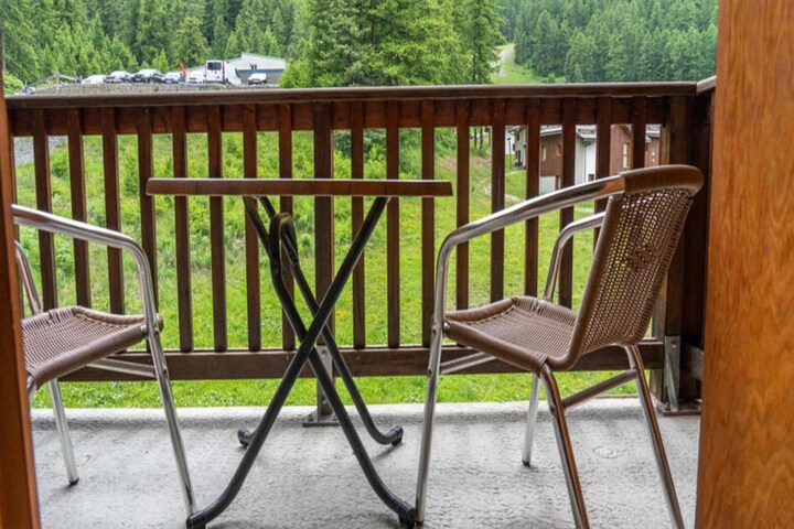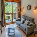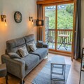This 30 m² apartment, designed for 4 people, is only a short walk from the resort's main square. It features a modern and welcoming design, with a living room equipped with a sofa bed (converts to a double bed), a wall-mounted television, and board games for entertainment. The fully equipped kitchen includes a dishwasher, refrigerator, microwave, filter coffee maker, and a 4-burner hob, with a dining area for 4 guests. The living room opens onto a furnished balcony offering a beautiful view of the resort, the larch forest, and surrounding mountains.