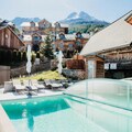On-site amenities include a heated outdoor pool, a Nordic bath for six, and a sauna for ultimate relaxation. During school holidays, the residence comes alive with entertainment, a games room with ping pong and board games, and outdoor play areas with inflatable castles for children. The restaurant and bar, "Le Comptoir des Chalets," offer themed meals, set menus, and takeaway options, along with a bread delivery service and picnic baskets.