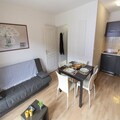 Designed for comfort and convenience, this 3-room duplex accommodates up to six guests, making it perfect for families or small groups. The living room features a cozy double sofa bed, while the two bedrooms offer restful nights with a double bed and either two single beds or bunk beds. The fully equipped kitchen invites you to prepare hearty meals after a day of exploration, and the residence's heated indoor pool with integrated whirlpools ensures relaxation is always within reach. Additional amenities include a sun-soaked outdoor terrace, optional linen and cleaning services, and pet-friendly accommodations for your furry companions.