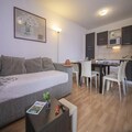 Designed with comfort and convenience in mind, the apartment features a cozy living room with a double sofa bed, a fully equipped kitchen, a bedroom with a double bed, and a sleeping alcove with bunk beds—perfect for families or groups of up to six. After a day of exploring, unwind in the residence's large heated indoor pool with integrated whirlpools, or relax on the outdoor terrace and bask in the sunshine, no matter the season. Additional amenities, such as fresh bread and pastries available for order at reception, ensure a delightful start to your mornings.