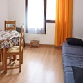 Inside, you'll find a thoughtfully designed space with laminate flooring throughout. The entrance hall features two single bunk beds, perfect for children or friends, while the living room boasts a comfortable double sofa bed for restful nights. The open-plan kitchenette is equipped for preparing meals after a day of exploration, and the bathroom and separate WC ensure convenience for all guests. The apartment's layout maximizes comfort and functionality, making it ideal for both short and extended stays.