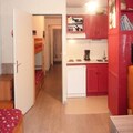 Designed to accommodate up to six guests, the apartment features a thoughtful layout that maximizes both space and functionality. The entrance hall is equipped with two single bunk beds, while the living room offers two single pull-out beds for added flexibility. A separate bedroom includes a double sofa bed and a single mezzanine bed, providing options for families or groups of friends. The kitchenette is fully equipped with a dishwasher, making meal preparation a breeze, and the property includes both a shower room and a bathroom, along with a separate toilet for added convenience.
