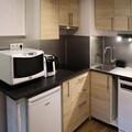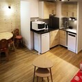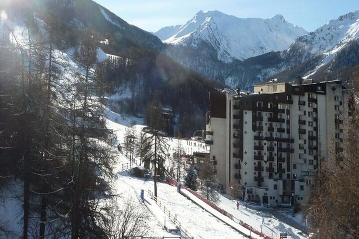 High above the lively heart of the resort, this beautifully renovated studio apartment offers a cozy retreat with ski-in/ski-out convenience for an unforgettable alpine getaway. Located on the fifth floor of a modern residence, the property combines comfort and practicality, making it ideal for couples or small families seeking a serene yet central base for their mountain adventures. Imagine stepping out onto your south-facing balcony, where the sun bathes the slopes and the resort below in golden light, creating the perfect backdrop for your morning coffee or après-ski relaxation. \n\nDesigned to accommodate up to four guests, the apartment features a sleeping alcove with two single bunk beds and a living area with a comfortable double sofa bed. The open-plan kitchen is fully equipped, including a dishwasher, ensuring easy meal preparation after a day on the slopes. A modern bathroom and separate toilet add to the convenience, while the building’s elevator provides effortless access to your alpine haven. \n\nSituated just steps from the resort center, you’ll find everything you need within easy reach. From ski schools and rental shops to charming cafes and restaurants, the vibrant atmosphere of the village invites you to explore its many delights. Families will appreciate the nearby daycare center, making this property particularly appealing for those traveling with young children. \n\nWhether you’re here to carve through pristine powder, soak up the sun on scenic trails, or simply unwind in the fresh mountain air, this studio apartment offers the perfect blend of comfort, location, and alpine charm. Let the beauty of the French Alps inspire your next adventure.