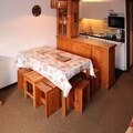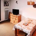 Designed to accommodate up to six guests, the apartment features a thoughtful layout with two sets of single bunk beds in the entrance, a comfortable living room with a double sofa bed, and a well-equipped open-plan kitchenette. The bathroom and separate WC add to the practicality, while the south-facing balcony invites you to soak in the sunshine and admire the stunning vistas. A dedicated ski locker with direct slope access ensures hassle-free adventures on the snow.