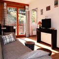 Designed with comfort and convenience in mind, this cozy apartment accommodates up to four guests. The living room features a comfortable double sofa bed, while the separate bedroom boasts a luxurious queen-size bed for restful nights. The open-plan kitchen is fully equipped, making it easy to prepare meals after a day of adventure. Modern amenities such as free Wi-Fi, a flat-screen TV, and a spacious bathroom with a separate WC ensure a comfortable stay. Guests can also enjoy the added luxury of the residence’s heated swimming pool, sauna, and hammam, perfect for unwinding after a day on the slopes.