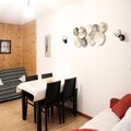 Designed to accommodate up to four guests, the apartment features a cozy living room with a double sofa bed and a separate bedroom with a plush queen-size bed for restful nights. The open-plan kitchen is fully equipped, making it easy to prepare delicious meals after a day of skiing or hiking. The bathroom and separate WC add convenience, while the free Wi-Fi ensures you stay connected. Located on the 2nd floor of a luxury residence with an elevator, the property also grants access to premium amenities, including a heated swimming pool, sauna, and hammam, perfect for unwinding after an active day.