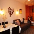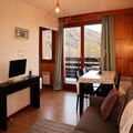 Designed for comfort and relaxation, the apartment accommodates up to four guests. The cozy living room features a double sofa bed, while the separate bedroom boasts a luxurious queen-size bed for restful nights. The open-plan kitchen is fully equipped, making it easy to prepare meals to enjoy on the spacious balcony with breathtaking views of the valley below. Modern amenities such as free Wi-Fi, a bathroom with a separate WC, and the convenience of an elevator ensure a seamless stay. For added indulgence, the luxury residence includes access to a swimming pool, sauna, and hammam, perfect for unwinding after an active day.