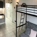 Step inside to discover a thoughtfully designed living space featuring a comfortable double sofa bed and a unique single mezzanine bed, perfect for a restful night's sleep. The open-plan kitchenette is equipped with all the essentials, making it easy to prepare your favorite meals after a day of adventure. The modern shower room with WC ensures convenience and comfort, while the studio’s warm ambiance creates a welcoming atmosphere.