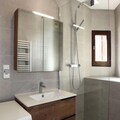 Designed to accommodate up to 12 guests, the apartment is thoughtfully laid out across two levels. On the entrance level, you’ll find a cozy sleeping area with two single bunk beds and a double bed, as well as a bathroom and separate WC. Upstairs, accessible via a staircase, the living space opens up to include a kitchenette, a welcoming living room with a double sofa bed, and two additional bedrooms—one with a double bed and another with two single bunk beds and a double bed. A second bathroom and WC add convenience, while the balcony offers breathtaking views of the slopes, perfect for enjoying a morning coffee or an evening sunset.