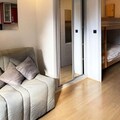 The studio is thoughtfully designed to accommodate up to four guests. It features a sleeping alcove with two single bunk beds, a living room with a comfortable double sofa bed, and a fully equipped kitchenette that opens into the living area. The parquet flooring adds a warm touch, while the shower room with WC ensures practicality. After a day of exploring the mountains, unwind in this cozy retreat that blends functionality with alpine charm. A ski locker within the residence adds to the convenience, making it easy to store your gear after a day on the slopes.