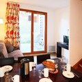 This spacious duplex apartment, designed to accommodate up to six guests, boasts a warm and inviting interior. The main floor features a cozy living room with a double sofa bed, an open-plan American-style kitchen perfect for preparing hearty meals, and a convenient WC. Upstairs, you’ll find a tranquil bedroom with a double bed and private balcony, a second bedroom with two single beds, and a modern bathroom. The residence also offers premium amenities, including a heated outdoor pool, a rejuvenating sauna, and a hammam, ensuring your stay is as relaxing as it is memorable.