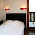 Designed to accommodate up to six guests, the apartment combines modern comfort with alpine charm. The spacious living room features two single pull-out beds, perfect for relaxing after an active day. The open-plan American-style kitchen is fully equipped, inviting you to prepare hearty meals to share with loved ones. Upstairs, you'll find a cozy bedroom with a queen-size bed and a private balcony, as well as a second bedroom with two single beds. A sleek bathroom and free Wi-Fi add to the convenience, while the residence itself boasts luxurious amenities, including a swimming pool, sauna, and hammam for ultimate relaxation.