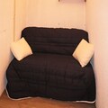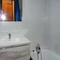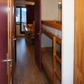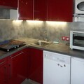 Inside, the apartment is thoughtfully designed to maximize comfort and functionality. The sleeping arrangements include two single bunk beds in a cozy alcove, a double sofa bed in a second alcove, and another double sofa bed in the living room, ensuring ample space for families or groups of friends. The fully equipped kitchenette, open to the living area, invites you to prepare hearty meals after a day of exploration. A modern bathroom and separate toilet add convenience, while the linoleum flooring provides a clean and practical touch.