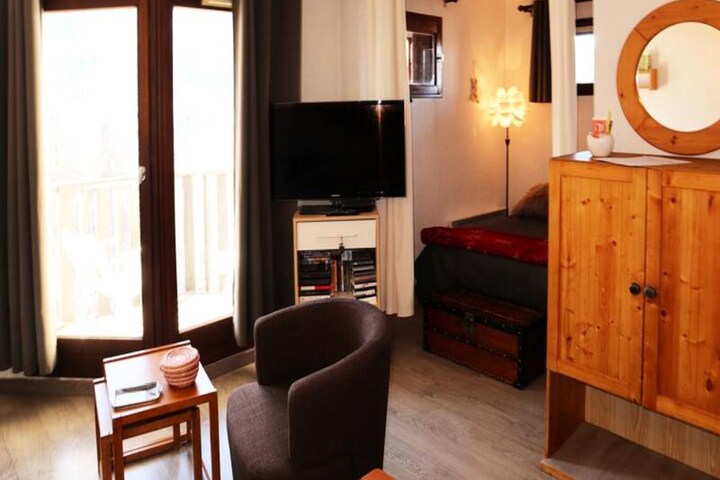 High above the serene alpine landscapes of the French Alps, this charming studio apartment offers a perfect retreat for families and small groups seeking both adventure and tranquility. Located in a peaceful neighborhood with true ski-in/ski-out access, this property ensures you can step directly onto the slopes and immerse yourself in the pristine beauty of the mountains. Just a one-minute walk from local shops, it combines convenience with the allure of alpine seclusion. From your south-west facing balcony, enjoy breathtaking views of the surrounding peaks as the sun sets over the horizon.