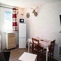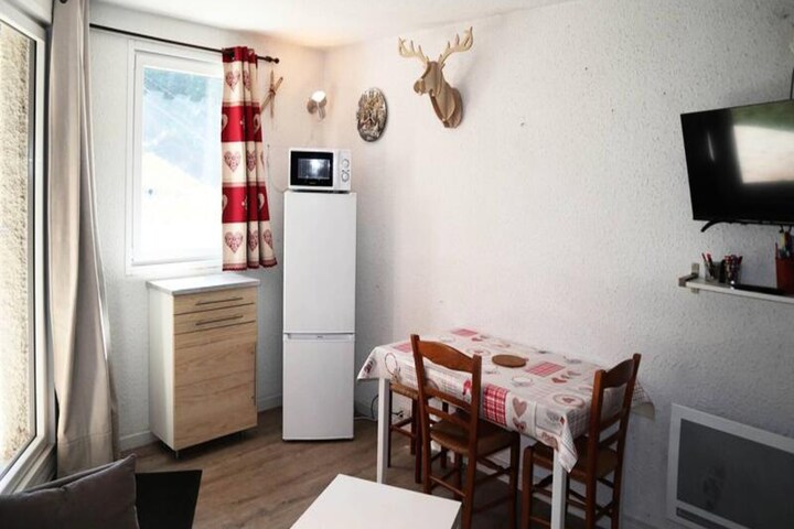 High above the serene slopes of the French Alps, this cozy studio apartment offers an unforgettable alpine escape for up to four guests. Imagine waking up to the crisp mountain air and panoramic views from your south-facing terrace, where the sun bathes the snow-covered peaks in golden light. Whether you're here to carve through fresh powder or simply soak in the tranquility, this charming retreat places you right at the heart of the action with ski-in/ski-out access directly from your terrace. The quiet neighborhood ensures a peaceful stay, yet you're just 350 meters from local shops and amenities, making convenience a part of your adventure. \n\nInside, the apartment is thoughtfully designed to maximize comfort and functionality. The entrance hall leads to a sleeping alcove with two single bunk beds, perfect for children or friends traveling together. The living room features a double sofa bed, creating a warm and inviting space to relax after a day on the slopes. The open-plan kitchen is equipped for preparing hearty meals, while the bathroom and separate WC add to the practicality of the layout. A ski locker is available for storing your gear, and unloading vehicles is made easy with direct access in front of the residence.\n\nBeyond the property, you'll find endless opportunities for exploration and enjoyment. The nearby chairlift and ticket office provide seamless access to the slopes, while the surrounding area offers a variety of trails for hiking and snowshoeing. In summer, the region transforms into a haven for outdoor enthusiasts with vibrant meadows, alpine festivals, and breathtaking vistas. Whether you're seeking adrenaline-fueled adventures or serene moments in nature, this studio apartment is the perfect base for creating cherished memories in the French Alps.