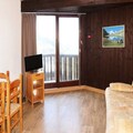 Designed to accommodate up to four guests, the studio is thoughtfully arranged to maximize comfort and functionality. The sleeping alcove features two single bunk beds, perfect for children or friends, while the living room boasts a cozy double sofa bed. The kitchenette, open to the living area, is equipped for preparing meals after a day on the slopes, and the modern shower room with toilet ensures a refreshing start or end to your day. The laminate flooring adds a touch of warmth and practicality, making this space as inviting as it is functional.