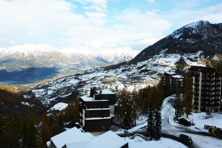 High above the bustling heart of the resort, Residence Les Carlines offers a cozy alpine retreat with direct ski-in/ski-out access. Situated on the 5th floor, this charming studio apartment invites you to experience the beauty of the French Alps with breathtaking views of the valley from its west-facing balcony. Whether you're here to carve through pristine slopes or simply soak up the serene mountain atmosphere, this property provides the perfect base for your adventure. The elevator ensures effortless access, making your stay as convenient as it is memorable. \n\nDesigned to comfortably accommodate up to four guests, the apartment features a thoughtful layout with an entrance hall equipped with two single bunk beds and a living room that includes a plush double sofa bed (160cm). The open-plan kitchenette is ideal for preparing hearty meals after a day on the slopes, while the bathroom with toilet ensures all the essentials are at hand. Warm and inviting, the space is perfect for couples, small families, or friends seeking a cozy mountain getaway. \n\nStep outside and you'll find yourself in the heart of the resort, with shops, restaurants, and ski facilities just moments away. The convenience of having everything within reach means you can focus on enjoying your holiday without worrying about logistics. In winter, the slopes are your playground, while summer transforms the area into a haven for hikers and nature enthusiasts. \n\nWhether you're chasing the thrill of skiing or the tranquility of alpine vistas, Residence Les Carlines promises an unforgettable stay in the French Alps. Let the charm of this studio and the allure of the mountains create memories you'll cherish forever.