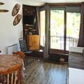 Inside, the studio is thoughtfully designed to maximize comfort and functionality. The entrance hall features two cozy single bunk beds, perfect for children or additional guests, while the main living area boasts a comfortable double sofa bed. The fully equipped kitchenette, seamlessly integrated into the living space, invites you to prepare hearty meals after a day of skiing or exploring. A modern bathroom and separate WC add to the convenience, ensuring a relaxing stay. The property also includes a ski locker, making it easy to store your equipment and head straight to the slopes.