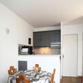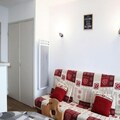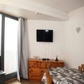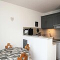 Designed to comfortably accommodate up to four guests, the studio features a thoughtful layout with an entrance hall equipped with two single bunk beds and a living room with a double sofa bed. The open-plan kitchen is fully equipped, making it easy to prepare hearty meals after a day on the slopes. A modern shower room with WC adds to the convenience, while the dedicated ski locker ensures your gear is always ready for the next outing.