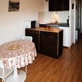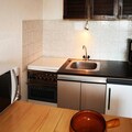 Designed to comfortably accommodate up to four guests, the studio features a thoughtful layout that maximizes space and comfort. The sleeping alcove includes two single bunk beds, while the living room boasts a double sofa bed, creating a versatile and welcoming environment for families or small groups. The kitchenette, open to the living area, is fully equipped for preparing hearty meals to fuel your mountain escapades. A modern shower room with toilet ensures all the essentials are covered, while the residence's ski locker adds an extra layer of convenience.