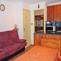 The apartment is thoughtfully designed to maximize comfort and functionality. The entrance area features two bunk beds, ideal for children or friends, while the living room boasts a comfortable double sofa bed. The open-plan kitchenette is fully equipped with modern appliances, including a dishwasher and freezer, ensuring you can prepare meals with ease. A separate bathroom and toilet add to the convenience, while the warm and inviting interior creates a welcoming atmosphere for your stay.