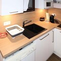 Designed to comfortably accommodate up to four guests, the apartment features a thoughtfully arranged layout. A sleeping alcove with two single bunk beds offers a cozy nook for restful nights, while the living room includes a sofa bed with two pull-out singles that can be joined for added flexibility. The open-plan kitchen is fully equipped, allowing you to prepare hearty meals after a day of adventure. A modern bathroom and separate WC add to the convenience, ensuring a comfortable stay for families or small groups.