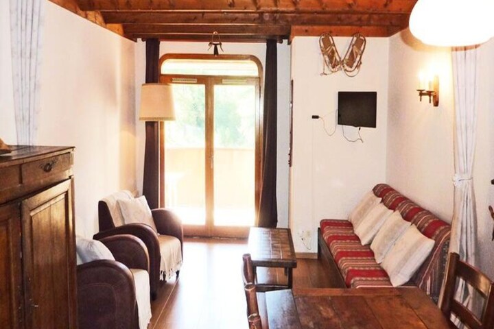 High above the sun-drenched slopes of the French Alps, this charming apartment in the L'Epervière Residence invites you to experience the magic of mountain living. Located in the heart of the resort, it offers a perfect blend of convenience and alpine charm, making it an ideal retreat for families and groups seeking a memorable getaway. From your private south-facing balcony, soak in panoramic views of the vibrant resort below and the majestic peaks beyond, a sight that will stay with you long after your holiday ends. \n\nStep inside this spacious two-room apartment, thoughtfully designed to accommodate up to six guests. The layout includes a cozy sleeping alcove with bunk beds, a comfortable living room with pull-out beds, and a tranquil bedroom with twin beds. A fully equipped kitchenette allows you to prepare hearty meals after a day of adventure, while the bathroom with a washing machine and separate toilet ensures all the comforts of home. The warm and inviting interiors create a relaxing atmosphere, perfect for unwinding after exploring the snowy pistes or scenic trails. \n\nThe residence’s central location means everything you need is just steps away. Whether you're heading to the ski lifts for a day on the slopes, exploring the charming village shops and restaurants, or enrolling in ski school, convenience is at your fingertips. In summer, the area transforms into a haven for hikers, cyclists, and nature enthusiasts, with trails that lead to breathtaking vistas and alpine meadows. \n\nWhether you’re seeking thrilling winter sports or serene summer escapes, this apartment offers the perfect base for creating unforgettable memories in the heart of the French Alps.