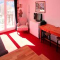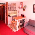 Located on the second floor with elevator access, the studio is thoughtfully designed to maximize comfort and functionality. The entrance hall features cozy bunk beds, perfect for children or additional guests, while the living room boasts a comfortable double sofa bed for restful nights. The kitchenette is fully equipped, allowing you to prepare hearty meals after a day on the slopes or exploring the picturesque surroundings. A separate shower room and WC add to the convenience, and the private balcony invites you to unwind with a warm drink as you take in the crisp mountain air.