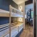 The 42 m² apartment is thoughtfully designed to accommodate up to eight guests, making it perfect for families or groups of friends. The warm and inviting living room is complemented by a fully equipped kitchen featuring modern appliances such as a dishwasher, air fryer, toaster, and Nespresso coffee machine, ensuring all the comforts of home. The sleeping arrangements include a master bedroom with a double bed, en-suite shower room, and television, a second bedroom with two single beds and a dressing room, an alcove with bunk beds ideal for children, and a sofa bed with a proper mattress in the living room. High-speed internet access is included, allowing you to stay connected throughout your stay.