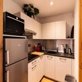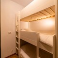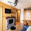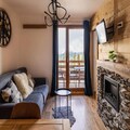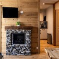 The residence features a variety of accommodations, from rustic to contemporary, all thoughtfully designed to host between 4 to 10 guests. Each unit boasts a private balcony or terrace, ideal for soaking in the breathtaking mountain views. The one-bedroom apartment, fully renovated in 2020, offers a cozy yet modern ambiance with a double bedroom, a sleeping alcove with three single bunk beds, and a comfortable living area complete with a sofa bed, smart TV, and an electric fireplace. The fully equipped kitchen invites you to prepare hearty meals after a day of exploration, while the bathroom with a bathtub provides a soothing retreat.