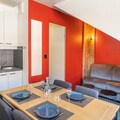 High above the serene slopes of Les Orres 1800, this charming alpine apartment offers a cozy retreat for those seeking adventure and tranquility in equal measure. Imagine waking up to the crisp mountain air and the golden hues of a southwest-facing balcony, where every moment feels like a postcard-perfect escape. Recently renovated with a touch of modern elegance, this 27m² gem combines the warmth of a chalet with the convenience of contemporary living, making it an ideal choice for couples, families, or small groups. \n\nStep inside to discover a thoughtfully designed space featuring a spacious living room with a smart TV and an electric fireplace, perfect for unwinding after a day on the slopes. The fully equipped kitchen invites culinary creativity, while the separate bedroom doubles as a second living area, complete with its own sofa and TV for added privacy. With comfortable bedding, including a mezzanine double bed and two sofa beds, this apartment accommodates up to four guests with ease. Essential amenities such as Wi-Fi, a dishwasher, and a raclette grill ensure a seamless holiday experience. \n\nLocated just 150 meters from shops, restaurants, and ski lifts, the residence offers unparalleled ski-in/ski-out access, making it a haven for winter sports enthusiasts. In summer, the surrounding trails beckon hikers and mountain bikers to explore the breathtaking landscapes of the Hautes-Alpes. Guests also enjoy access to a heated indoor pool at the neighboring residence, adding a touch of luxury to their stay. \n\nWhether you’re carving through fresh powder or soaking in the alpine sunshine, this apartment is your gateway to the magic of Les Orres 1800. Create unforgettable memories in a destination where every season brings its own charm.
