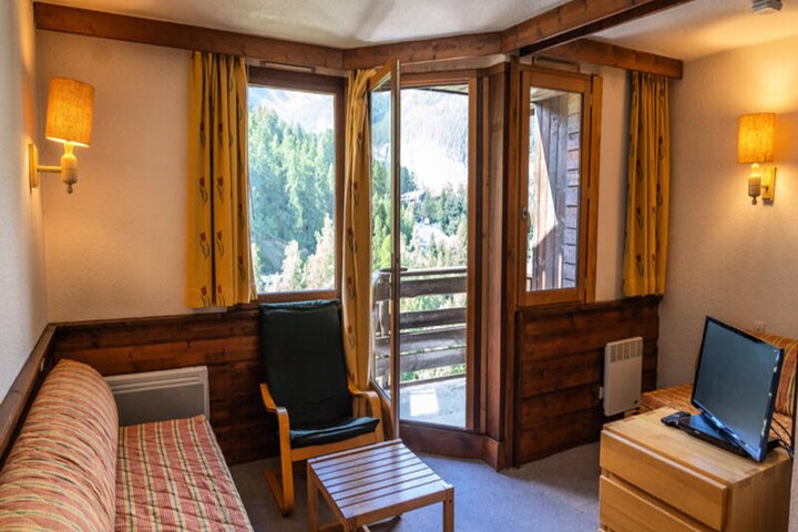 High above the picturesque Embrun valley, this charming studio apartment in the heart of Les Orres 1650 invites you to experience the perfect alpine getaway. With its southwest-facing balcony, you’ll wake up to breathtaking panoramic views of the surrounding mountains and bask in the sunshine that graces the Hautes-Alpes almost daily. Whether you’re sipping coffee or enjoying a good book, the tranquil beauty of this setting will leave you refreshed and inspired. \n\nInside, the 30m² studio is thoughtfully designed to accommodate up to four guests. The sleeping alcove offers a cozy bunk bed, while the living area features a pull-out sofa bed and an additional single sofa bed, ensuring flexibility and comfort for families or small groups. The fully equipped kitchen, complete with a dishwasher, microwave/grill, and all the essentials, makes it easy to prepare meals after a day of adventure. The bathroom, with its inviting bathtub, is perfect for unwinding, and a washing machine adds convenience to your stay. \n\nStep outside, and you’re just moments from the snow front and chairlifts, thanks to the residence’s unique 19-meter-high walkway. After a day on the slopes, relax by the cozy fireplace in the shared lounge or challenge friends to a game of billiards. The solarium offers a serene spot to soak up the alpine sun, while the private ski locker ensures your gear is always ready for the next adventure. \n\nWith shops, restaurants, and activities like mountain biking, zip-lining, and treetop courses all within 100 meters, this residence combines convenience with the charm of a historic alpine resort. Whether you’re here for snow sports or summer hikes, this is your gateway to unforgettable memories in the heart of the Hautes-Alpes.