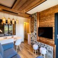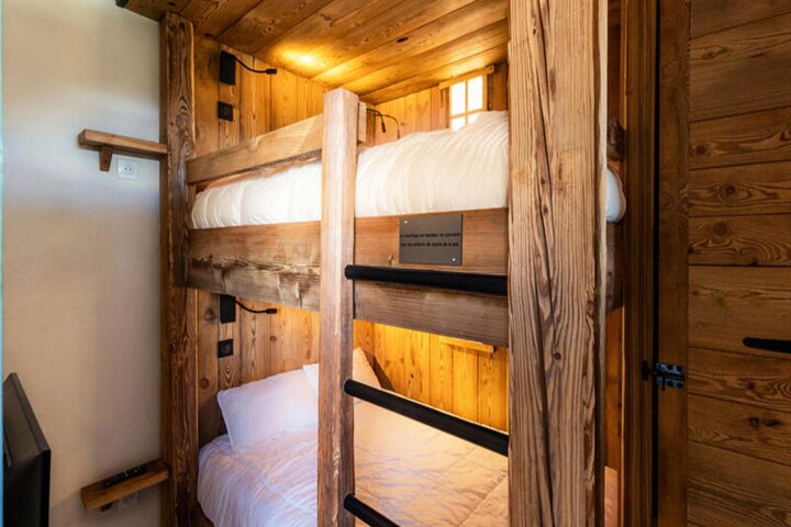 High above the valley at 1,800 meters, this charming apartment in the Hauts de Préclaux residence offers a perfect alpine retreat in the heart of Les Orres 1800. With breathtaking views of the Serre-Ponçon lake valley and the surrounding larch forests, this cozy haven combines modern comfort with the vibrant energy of the resort's central square. Whether you're sipping coffee on the balcony or exploring the nearby slopes, every moment here feels like a celebration of mountain life. \n\nThe apartment is thoughtfully designed to accommodate up to six guests. It features a spacious living area with a large corner sofa and TV, a fully equipped kitchen with modern appliances, and two inviting bedrooms. The first bedroom includes bunk beds (140 x 190 cm), while the second offers a queen-size bed (160 x 190 cm) for restful nights. A sleek bathroom with a walk-in shower, a separate toilet, and a balcony with artificial grass and garden furniture complete the space, ensuring both comfort and style. \n\nGuests can enjoy the residence's heated outdoor swimming pool and sauna cabins, open seasonally, for ultimate relaxation after a day on the slopes. The apartment also includes a private ski locker and a parking space in a nearby underground car park, adding convenience to your stay. \n\nLocated directly above the resort's main square, you'll have easy access to shops, restaurants, bars, and ski lifts. For a change of scenery, take a scenic ten-minute walk through the forest to the neighboring Orres 1650 resort. Whether you're here for winter sports or summer hikes, this apartment is your gateway to unforgettable alpine adventures.
