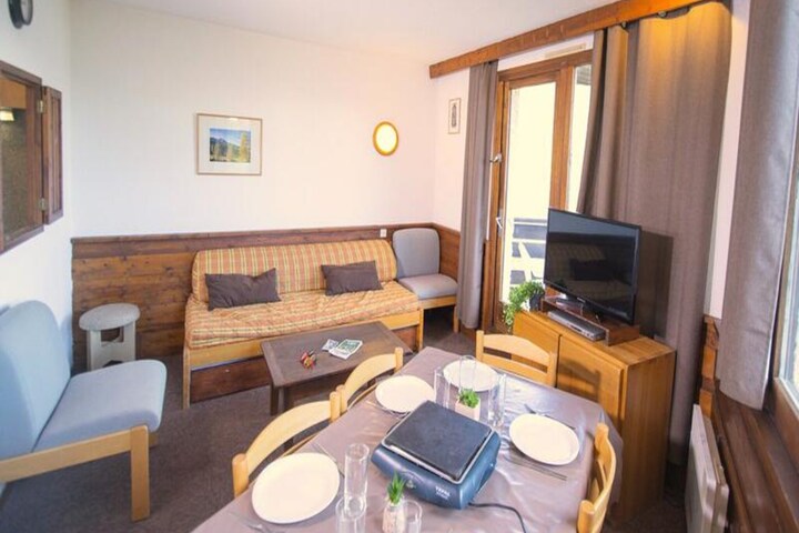 High above the picturesque Embrun valley, this elegant apartment in Les Orres 1650 invites you to experience the magic of the Hautes-Alpes. With breathtaking panoramic views and a prime location just steps from the snow front, this residence combines alpine charm with modern convenience. Imagine mornings spent gazing at the majestic peaks from your balcony, followed by effortless access to chairlifts via the unique 19-meter-high walkway. After a day of skiing or exploring, unwind by the cozy fireplace or challenge friends to a game of billiards, while the solarium offers the perfect spot to soak up the region’s renowned sunshine. \n\nSpanning 45m², this thoughtfully designed apartment accommodates up to six guests, making it ideal for families or small groups. The mountain alcove features bunk beds, a separate bedroom offers twin beds, and the living room includes a pull-out sofa bed, ensuring flexible sleeping arrangements for all. The fully equipped kitchen boasts a dishwasher, microwave/grill, and hot stone grill, perfect for preparing hearty meals to share after an active day. The bathroom’s inviting bathtub provides a soothing retreat, while the private ski locker adds convenience to your stay. \n\nSituated in the heart of Les Orres 1650, you’ll find everything you need within 100 meters: shops, bakeries, restaurants, and thrilling activities like snow sports, mountain biking, zip lining, and treetop adventure courses. Whether you’re seeking adrenaline-filled days or tranquil evenings under the stars, this residence offers a seamless blend of comfort and adventure. Let the beauty of the Embrun valley and the warmth of Les Orres create memories you’ll treasure forever.