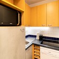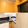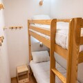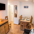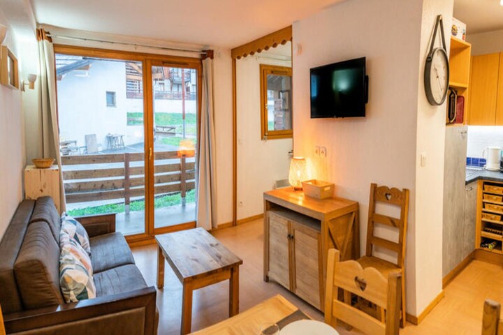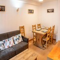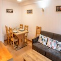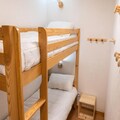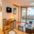 This 33 m² 2-room apartment comfortably accommodates up to 6 guests. It includes a bedroom with two single beds (which can be combined into a double), a mountain corner with bunk beds, and a double sofa bed in the living room. The apartment also features a fully equipped kitchen with a raclette machine, dishwasher, toaster, and kettle, making it perfect for preparing meals during your stay. A closed terrace with a gate provides ideal storage for bikes, and the bathroom includes a bathtub for relaxing after a day of activities.