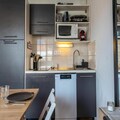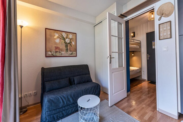 High above the charming hamlet of Bois Méan, at an altitude of 1800 meters, Les Terrasses du Soleil d’Or offers a warm and welcoming retreat for your mountain holiday. With its prime location just steps from the slopes, this residence is perfect for families and ski enthusiasts alike. Imagine starting your day with the crisp alpine air, dropping off your little ones at the daycare or snow garden opposite the residence, and heading directly to the Préclaux magic carpet lift or Prébois chairlift for a day of adventure on the pristine slopes of Les Orres 1800. \n\nInside, the studio apartment is thoughtfully designed to accommodate up to four guests within its cozy 24 m² space. The entrance hall features two single bunk beds, while the living area includes a comfortable sofa bed, television, and a fully equipped kitchen with modern appliances such as a dishwasher, microwave, and Nespresso coffee machine. The west-facing balcony offers stunning views of the resort and the surrounding larch forest, creating the perfect spot to unwind after an active day. \n\nGuests will also enjoy unlimited access to the residence’s heated indoor pool, complete with a whirlpool and outdoor terrace, open seasonally in both summer and winter. Bread and pastries can be ordered directly from reception, adding a touch of convenience to your mornings. With amenities like restaurants, a mini-market, and rental shops all within 100 meters, everything you need is right at your fingertips. \n\nWhether you’re here to ski, explore the picturesque trails, or simply relax in the serene mountain setting, Les Terrasses du Soleil d’Or promises an unforgettable alpine experience for all seasons.
