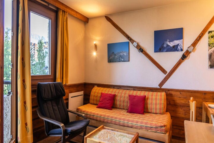 High above the picturesque Embrun valley, this elegant studio apartment in Les Orres 1650 invites you to experience the magic of the Hautes-Alpes. With breathtaking views of rugged peaks and alpine forests from your northwest-facing balcony, every moment feels like a postcard come to life. Whether you're here for the thrill of skiing or the tranquility of mountain air, this residence is your gateway to unforgettable adventures. The unique 19-meter-high walkway connects you seamlessly to the snow front and chairlifts, making your journey to the slopes effortless and enjoyable. After a day of exploring, unwind by the cozy fireplace in the residence or challenge friends to a game of billiards. The solarium offers a sunny retreat, perfect for soaking in the region's renowned sunshine. \n\nInside, the thoughtfully designed 30m² studio comfortably accommodates up to four guests. The sleeping alcove features a bunk bed, while the living area provides a double pull-out sofa bed and a single sofa bed, ensuring restful nights for all. The kitchen is fully equipped with a dishwasher, microwave/grill, and all the essentials for preparing delicious meals to share with loved ones. The bathroom, complete with a relaxing bathtub, is ideal for unwinding after a day on the slopes or trails. \n\nSituated in the heart of Les Orres 1650, you'll find everything you need within 100 meters—mini-markets, bakeries, souvenir shops, and restaurants. The resort offers year-round activities, from exhilarating snow sports and mountain biking to zip-lining and treetop adventure courses. A private ski locker adds convenience, ensuring your equipment is ready for the next day's excitement. \n\nWhether you're seeking alpine thrills or serene mountain escapes, this property combines comfort, convenience, and stunning natural beauty for a truly memorable stay.