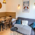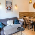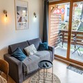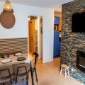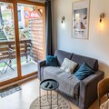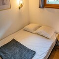 Property along with its ideal location offers a delightful and convenient stay for up to 4 guests. This 33 m² apartment, situated on the ground floor, features a warm, inviting atmosphere with stone and wood decor. It includes a bedroom with a double bed and a separate sleeping area with two single bunk beds (90 x 190 cm). The living room, equipped with a sofa, television, and electric fireplace, leads to a balcony facing east with stunning views of the surrounding mountains. The apartment also provides a fully equipped kitchen with modern amenities such as a dishwasher, electric hob, microwave, toaster, and Nespresso coffee maker. Additional amenities include a bathroom with a bathtub and a separate toilet, along with a private ski box for equipment storage.