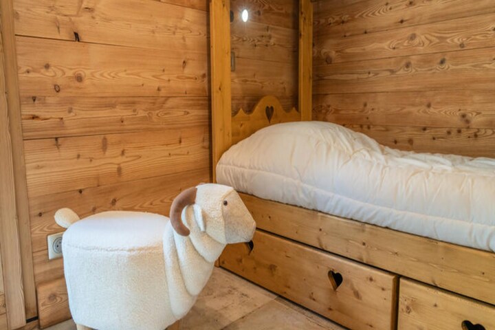 High above the serene Embrun valley at 1,550 meters, this charming chalet in the Pramouton district invites you to experience the perfect alpine getaway. Surrounded by tranquility and breathtaking views, this property offers a cozy retreat for families and friends seeking both adventure and relaxation in the heart of the Les Orres resort. Whether you're here to carve through pristine slopes or bask in the summer sun by the heated outdoor pool, every moment promises unforgettable memories. \n\nThe chalet boasts 52 m² of thoughtfully designed living space on the ground floor, comfortably accommodating up to six guests. Its authentic character is reflected in the tasteful decor and warm ambiance. The spacious living area opens onto a south-facing terrace, ideal for soaking in the mountain vistas. Modern amenities such as fiber optic Wi-Fi, a Bluetooth speaker, and a flat-screen television ensure connectivity and entertainment, while the fully equipped open-plan kitchen caters to culinary enthusiasts with a dishwasher, oven, Nespresso machine, fondue set, and more. The sleeping arrangements include a queen-size bed in one bedroom and four single bunk beds in the other, complemented by a sleek bathroom with a walk-in shower and a separate toilet. \n\nLocated just 350 meters from the Pramouton and Champ Lacas ski lifts, the chalet provides seamless access to the 100 km of slopes in the Les Orres ski area. A free shuttle runs every 10 minutes, connecting you to the resort's lively center, where you'll find local shops, bakeries, restaurants, and entertainment. In summer, take advantage of the nearby heated outdoor pool with panoramic views of Lake Serre-Ponçon and the surrounding valley. \n\nAwarded the prestigious \