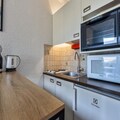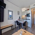 The 19 m² studio is thoughtfully designed to accommodate up to four guests, making it ideal for families or small groups of friends. The sleeping area features 80x190 cm bunk beds, while the living area includes a comfortable 140x190 cm sofa bed. The fully equipped kitchen, complete with a Dolce Gusto coffee machine, raclette grill, and mini-oven, opens onto a freshly renovated living space, creating a warm and inviting atmosphere. For added convenience, a private ski locker is available to store your gear after a day on the slopes.