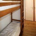 Inside, the apartment is thoughtfully designed to accommodate up to eight guests, making it ideal for families or groups of friends. The layout includes a cozy living room with two single pull-out beds, a bedroom with a double bed, and a second bedroom with two single beds. An entrance hall with two single bunk beds adds flexibility for larger groups. The well-equipped kitchenette invites you to prepare hearty meals after a day of adventure, while the bathroom and separate toilet ensure convenience for all. Modern amenities like a heated outdoor pool and a sauna in the residence elevate your stay to a new level of relaxation and indulgence.