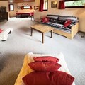 Designed to accommodate up to six guests, the apartment features a cozy sleeping alcove with bunk beds, a welcoming living room with a double sofa bed, and a private bedroom with two single beds. The fully equipped kitchenette invites you to prepare hearty meals after a day on the slopes, while the southeast-facing balconies provide stunning views of the resort and surrounding mountains. A bathroom and separate toilet add to the practicality of this well-thought-out space. For added convenience, two underground parking spaces with direct elevator access are available for rent upon request.