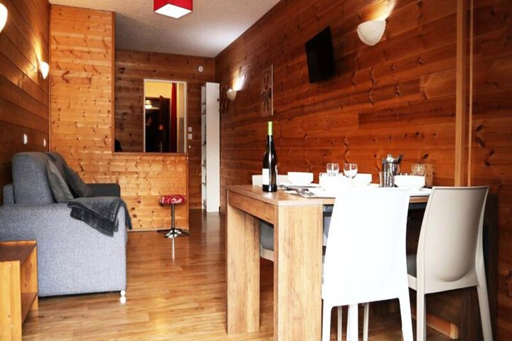 High above the serene valley of Embrun, this charming studio apartment in the heart of the Orres 1650 resort offers an unforgettable alpine escape. With the slopes just outside your door, every morning begins with the promise of adventure, as the crisp mountain air and breathtaking views of the southern peaks set the tone for your day. Whether you're here for the thrill of skiing or the tranquility of summer hikes, this residence invites you to immerse yourself in the beauty of the French Alps. \n\nDesigned to comfortably host up to four guests, the apartment features a thoughtful layout that maximizes both space and comfort. An alcove with two single bunk beds opens onto the cozy living area, where a double sofa bed provides additional sleeping arrangements. The kitchenette is equipped for preparing meals after a day of exploration, while the bathroom and separate WC ensure convenience for all. Step out onto the south-facing balcony to soak in the stunning views of the slopes, a perfect spot to unwind with a warm drink or simply take in the alpine ambiance. \n\nThe residence also includes practical amenities such as a ski locker on the ground floor, making it easy to store your gear and head straight to the slopes. Beyond skiing, the Orres 1650 resort offers a lively village atmosphere with restaurants, shops, and activities for all ages. In the warmer months, the region transforms into a haven for outdoor enthusiasts, with trails leading to panoramic vistas and opportunities for mountain biking or paragliding. \n\nWhether you're seeking an action-packed winter getaway or a peaceful summer retreat, this studio apartment provides the ideal base for creating lasting memories in the heart of the Alps.