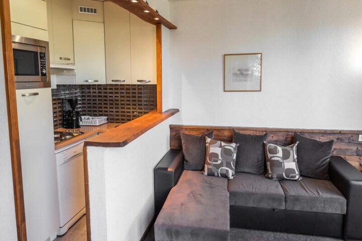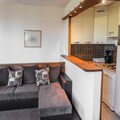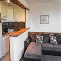 Property along with a spacious and well-designed layout offers a 39m² two-room apartment, ideal for up to five guests. The apartment features a bedroom with twin beds, a pull-out sofa bed, and a single bench seat in the living room, providing flexible sleeping arrangements. The south-west facing balcony offers stunning views of the surrounding mountains, perfect for relaxing in the sun. The apartment includes a fully equipped kitchen with a dishwasher, microwave grill, and all necessary kitchenware. A private ski locker is provided for convenient storage of equipment, and pets are allowed for an additional charge.