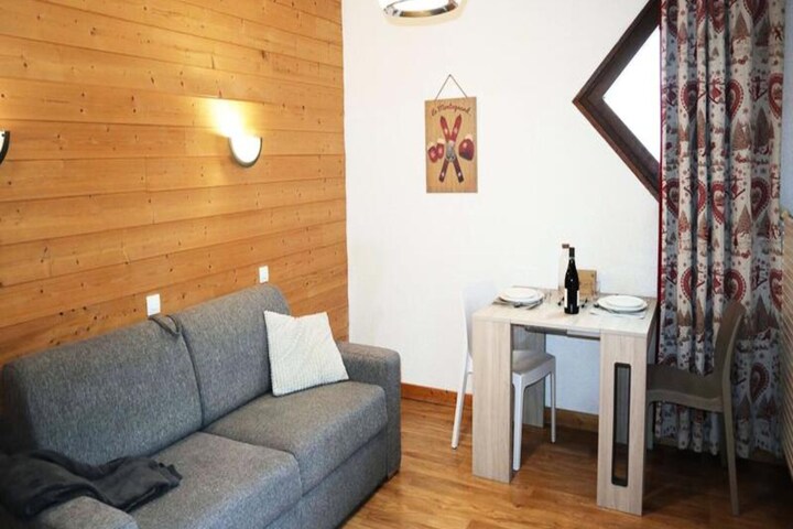 High above the serene valleys of the Hautes-Alpes, this charming studio apartment offers a cozy retreat in the heart of the Orres 1650 resort. Perfectly positioned right on the slopes, it invites you to wake up to the crisp mountain air and the gentle hum of skiers carving their way down the pistes. The east-facing balcony provides delightful views of the children’s ski school, making it an ideal spot for families or couples seeking a tranquil alpine escape. With its warm atmosphere and unbeatable location, this residence is a gateway to unforgettable mountain adventures. \n\nInside, the apartment is thoughtfully designed to maximize comfort and convenience. The living room features a double sofa bed, creating a relaxing space to unwind after a day on the slopes. The kitchenette, seamlessly integrated into the living area, is equipped for preparing hearty meals to enjoy in the cozy ambiance. A modern shower room with WC completes the layout, while linoleum flooring throughout adds a touch of practicality to the stylish interior. For added ease, a ski locker is available on the ground floor, ensuring your gear is always ready for action. \n\nBeyond the residence, Orres 1650 offers a vibrant mix of activities and amenities. From ski schools and equipment rentals to charming restaurants and après-ski spots, everything you need is just steps away. In summer, the resort transforms into a haven for hiking, mountain biking, and exploring the lush alpine landscapes. Whether you’re here for winter sports or summer adventures, the breathtaking scenery and welcoming atmosphere promise a memorable stay. \n\nChoose this delightful studio for its prime location, cozy comfort, and the chance to immerse yourself in the beauty of the French Alps. Whether you’re carving through powder or basking in the summer sun, every moment here is a celebration of nature and relaxation.