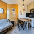 Surrounded by the serene beauty of larch trees, this charming apartment in the L’Oustal residence invites you to experience the magic of the French Alps. Whether you’re seeking thrilling adventures or peaceful moments, this mountain retreat offers the perfect blend of comfort and convenience. Imagine waking up to the crisp alpine air, stepping onto your private balcony, and gazing at the tranquil forest views before embarking on a day filled with excitement. Located just steps from the slopes, it’s a haven for ski enthusiasts and nature lovers alike. \n\nInside, the apartment boasts a cozy yet functional layout, accommodating up to six guests across its 28 m² of living space. The fully equipped kitchen, complete with a Senseo coffee machine, raclette grill, and toaster, opens onto the living room, creating a warm and inviting space for shared meals and laughter. Sleeping arrangements include bunk beds in the bedroom, a pull-out sofa bed in the mountain alcove, and another sofa bed in the living room, ensuring restful nights for everyone. After a day of adventure, unwind in the renovated bathroom featuring a soothing bathtub, or take advantage of the washing machine and hairdryer for added convenience. \n\nSituated in the heart of the 1650 resort, you’ll find everything you need within a hundred meters—mini-market, bakery, souvenir shops, and restaurants. The resort’s activities, from mountain biking and snow sports to zip-lining and treetop adventure courses, promise unforgettable memories for all ages. With direct access to the slopes and a private ski locker, this residence is a gateway to endless alpine adventures. \n\nWhether you’re here to ski, hike, or simply relax, this apartment offers a peaceful yet vibrant escape in the heart of the mountains. Create lasting memories with family or friends in this idyllic setting where nature and comfort come together seamlessly.
