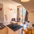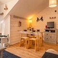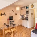 The Hauts de Préclaux residence, located at 1,800 meters in the heart of Bois-Méan, offers a prime location in Les Orres 1800, surrounded by shops, bars, and restaurants. This 35m² renovated studio in the "Les Eglantines" building is perfectly situated on the central square, offering easy access to the resort's vibrant amenities. The studio features a south-east-facing balcony with a direct view of the slopes, ideal for enjoying meals in the sun. Inside, you'll find a cozy living room with a sofa bed, TV, and a fully equipped kitchen. The sleeping area includes a pull-out sofa bed and a bunk bed (with a double bed at the bottom and a single bed on top), comfortably accommodating up to 5 people. The apartment also has a bathroom with a bathtub, separate toilet, and ample storage.