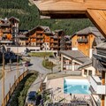 The residence boasts a heated outdoor swimming pool, open in both summer and winter, and sauna cabins, perfect for unwinding after a day on the slopes. Guests also enjoy private underground parking and a ski box for winter sports gear.